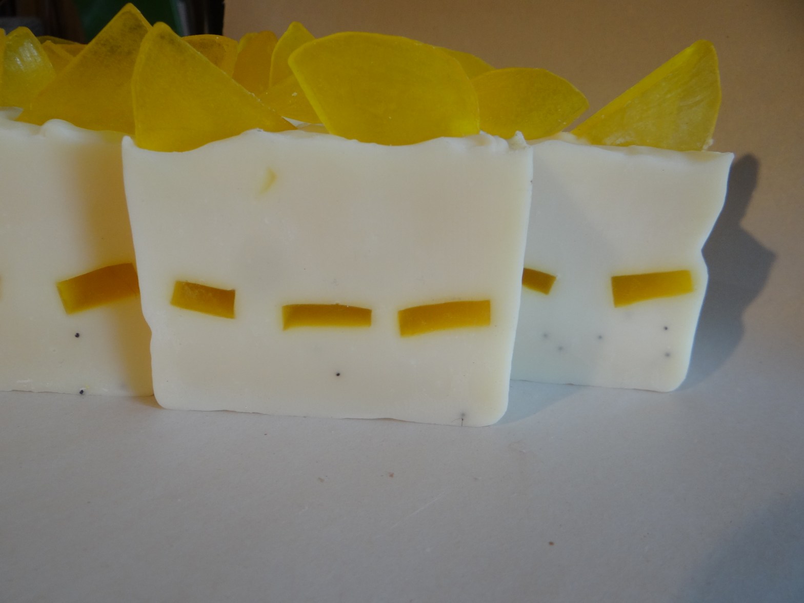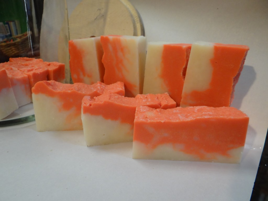 Apricot oil is the secret to this soap’s success. It’s a great soap to use for your face and hair, the apricot oil firms and tones the skin, fades wrinkles, reduced dark circles under eyes, and stimulates hair growth. If you have acne prone skin, this soap may not be for you because it may tend to clog your pores, but on the other hand if you have ezcema or psoriasis, the apricot oil in this soap will help fight inflammatory skin and reduce redness. Freshen your day with this soap’s bright color and mildly sweet scent.